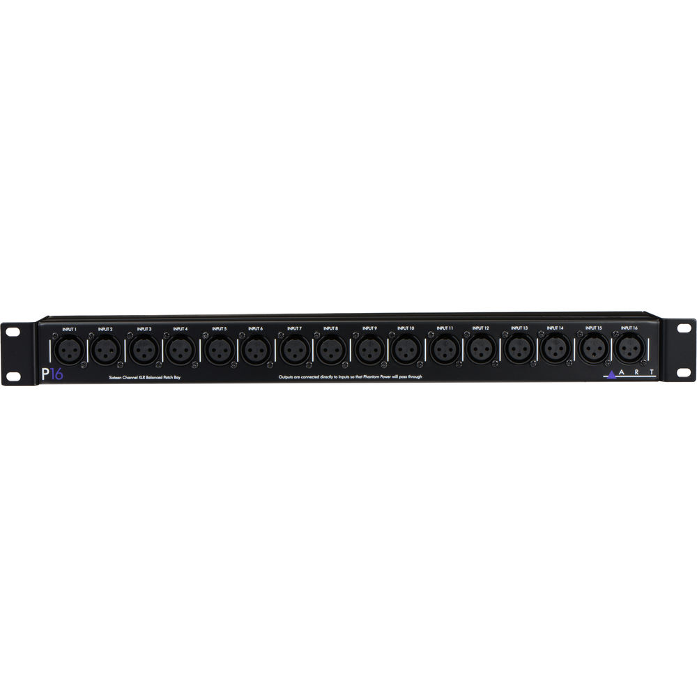 O Patch Bay XLR balanceado P16 da ART é um patch bay de 16 canais de alta qualidade, ideal para uso em aplicativos ao vivo, em estúdio ou em áudio instalado, onde é necessário fácil acesso às entradas XLR. A unidade possui um chassi de aço 1RU com acabamento anodizado preto para uma vida útil longa e profissional.
